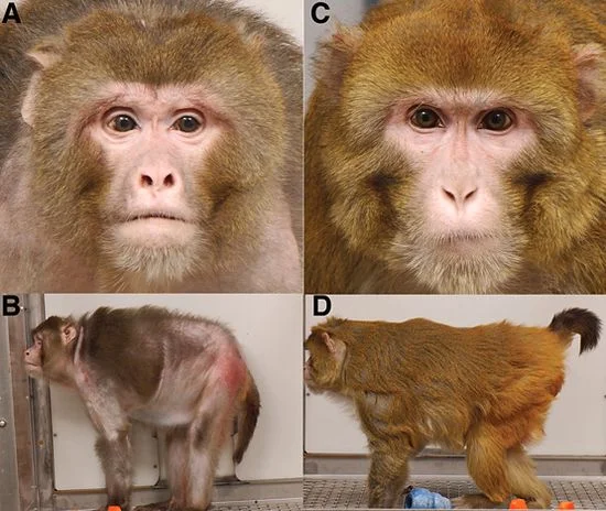 The monkey on the right was on a calorie restricted diet. (C and D)